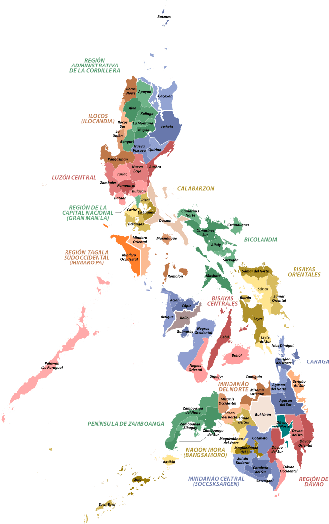 • 17 regiones, como la Región de la Capital Nacional (NCR), Ilocos, Bicol, Davao, entre otras.