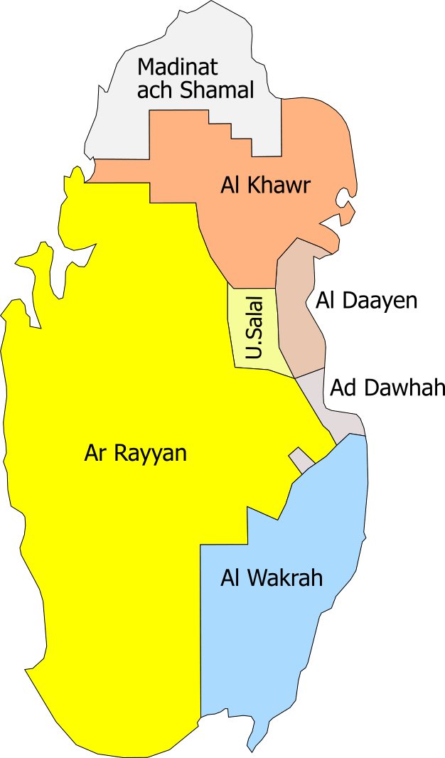 El mapa de Qatar con nombres es el más útil si quieres entender su organización interna.